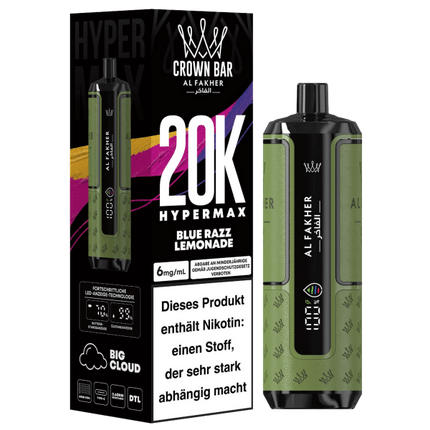 Die Al Fakher Crown Bar Hypermax 20K ist die perfekte Wahl für alle, die ein leistungsstarkes, wiederaufladbares Vape-Gerät mit außergewöhnlichem Geschmackserlebnis suchen. Mit bis zu 20.000 Zügen setzt diese DTL-Vape neue Maßstäbe in Sachen Ausdauer und Genuss.